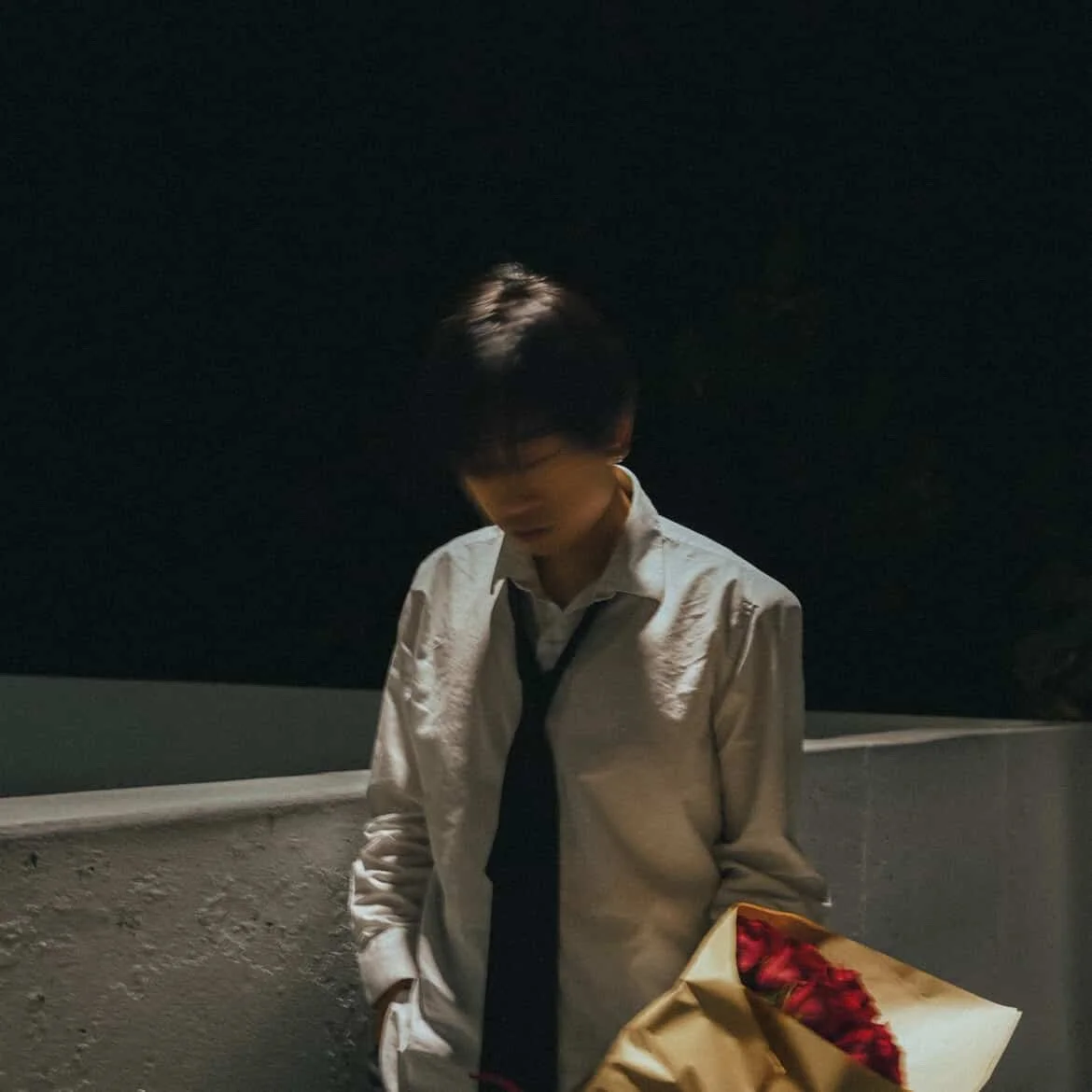 slone worked with csafilm to shoot the cover art, visualizer, and concept shots all at a location overlooking Seattle’s Space Needle. “The hidden rooftop garden was intentional to represent Seattle while keeping a dark night aesthetic,” he said. slone approached the shoot almost like an actor, embodying the numb, destitute vibe of the song while dressed in a white button-up and a loose black tie, as he held red roses. “They symbolized a recent breakup and the act of letting go,” he explained.